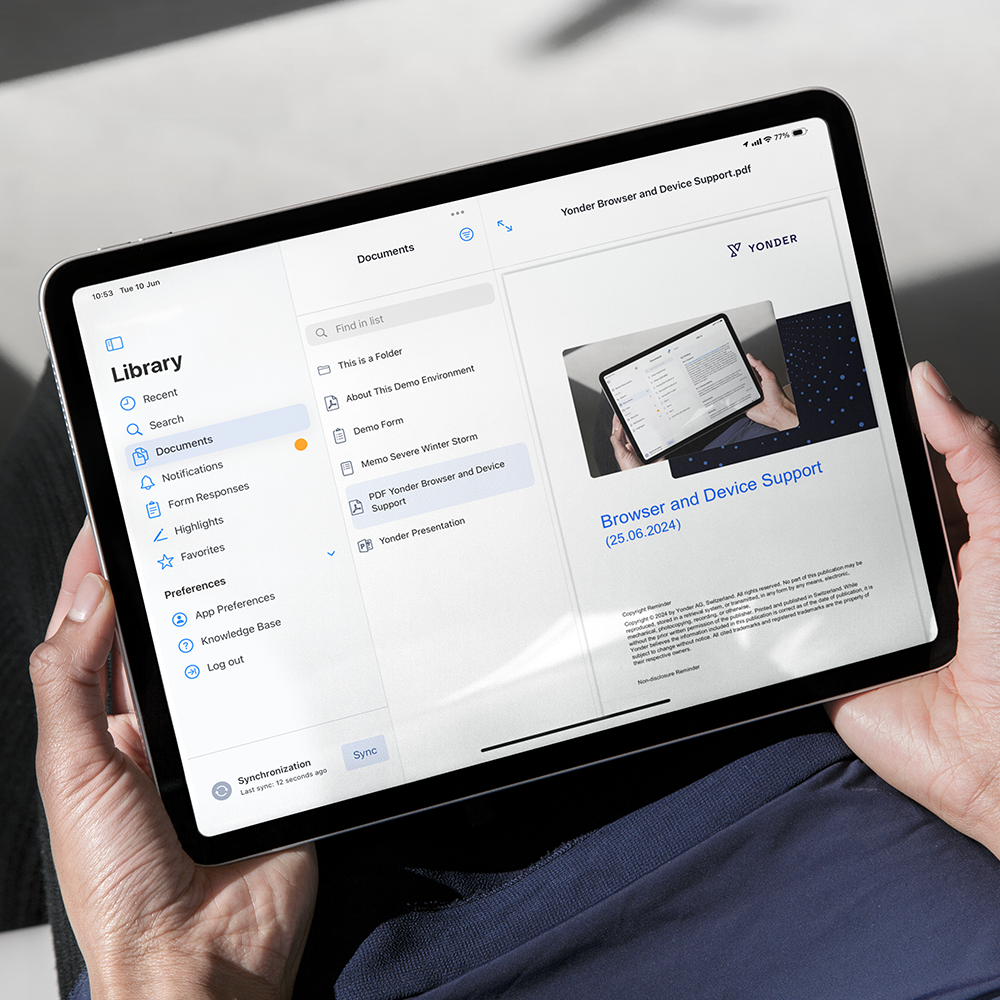 Streamline your document management with controlled distribution, automatic syncing, compliance tracking, and integrated forms. From file drops to offline access, Yonder Light provides everything you need for modern document distribution and end-user compliance.